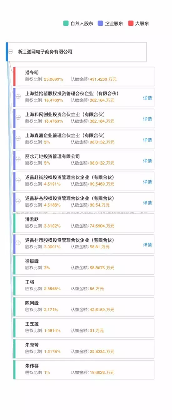据了解,赶街网的母公司“浙江遂网电子商务有限公司”第一大股东一直是赶街网创始人、CEO潘东明(潘冬明)。根据第三方软件,此前,潘东明持股比例约25%。