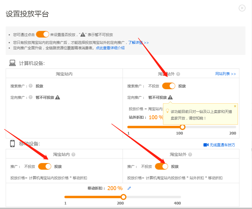 进行推广,开始宝贝权重比较低,没有竞争力,我们可以在推广的时候先不开站外推广,前期的话我们需要测试创意图和关键词,培养质量分,站外推广的话,可能会对我们有一定的影响。