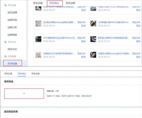 可以点击红框当中的加号,添加宝贝链接或者宝贝ID,将竞品添加到下面的“监控商品列表”当中,因为有数量限制,所以你已经分析完了,没有什么价值的,就可以点击“取消”按钮直接取消掉。