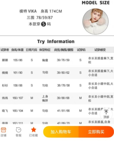 甚至像有一些服饰鞋包,如果没有尺寸信息,买家网购根本就不敢买,会担心买的不合适,到时候退货更麻烦,所以如果你的产品有尺寸规格信息的我们一定要写详细,这种情况下才能帮助你留下这个顾客在店铺进行成交,因为并不是所有买家都 喜欢咨询客服,这边可能就直接流失掉了很多顾客。除了模特之外,我们可以找几个不同身高体重的去进行试穿。那么可以让更多的买家看到跟自己身高体重差不多的模特的穿着效果。如图2: