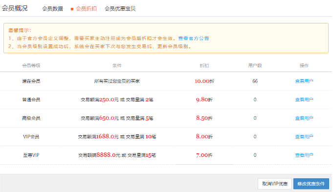 虽然建立会员制度可以说是一种老掉牙的老客户营销方式,现在拿过来用仍旧不过时,常用在新品销量破零阶段。我们将店铺中的客户进行分组,根据交易金额或交易量划分会员等级,不同等级可以享受不同折扣优惠。通过这种方式,带动老客户加入会员的行列,提高客户对店铺的黏性,并为了享受更多的特权而提升自己的等级。