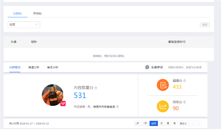 这个是微淘粉丝管理后台,微淘号可以直接查看账户粉丝结构情况并进行处理,粉丝主要分为三种健康粉丝、沉默粉丝、异常粉丝等,大家可以在自己粉丝管理后台查看店铺粉丝的一个健康情况,并进行清理和维护。主动管理店铺粉丝,这样也可以提升内容营销被推荐的几率!