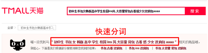 1、如何拆解标题中词根,在天猫搜索框后复制宝贝全标题+aaaa输入,系统会自动拆解词根;