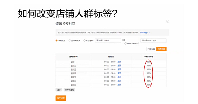 通过时间折扣这个工具降价,也就是说对我们原有的出价,出三分之一的出价,来达到屏蔽不想要的这部分人群的目的。