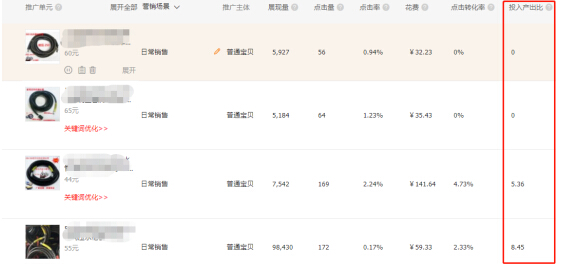 但如果我们调整花费,把那些没转化的关键词删掉,或者降低出价,虽然会减少一部分流量但是我还可以去做多一点关键词呀!