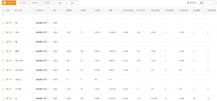 总的来说就是数据表现不好的人群不断降低溢价直到最终删除。数据表现好的人群提升溢价以后观察7天投产是否更好,没有更好改回原溢价。