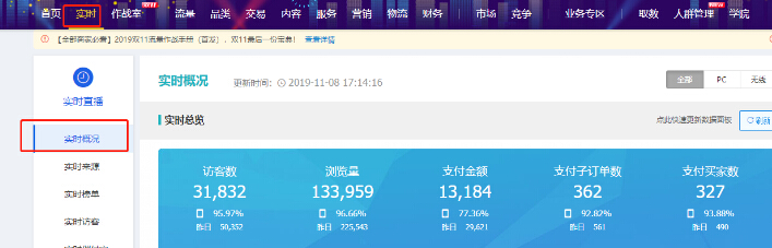 在生意参谋点击【实时】——点击【实时概况】