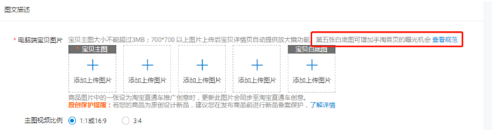 5.产品主图:为什么第五个点我要来讲这个产品的主图呢,因为第五点,可能是大家非常容易忽略掉的一个点,就是产品的第五张图放一张白底图,其实在我们发布宝贝的时候,系统就会提示了,第五张图片如果是放白底图,那么就会增加手淘曝光的几率,所以说大家在发布宝贝的时候一定要去注意。