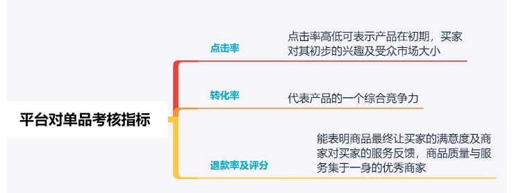 下单后,网上对商品的描述说千道万都不足以为真,只有消费者拿到商品亲身体验后才是真实感受,所以买家对产品的收货评价及售后的退换货服务的评价也是平台重视的点。平台追求的是星级服务卖家,不仅要求产品的质量过硬更重要的是要有一种服务的态度。所以卖家在追求流量,而平台在追其能为买家提供优质产品与完美服务的店铺。总结起来平台主要看的指标是点击率,转化率,店铺评价及退款率。