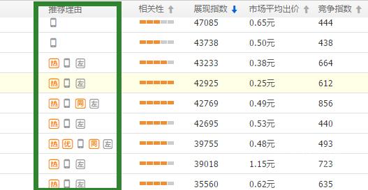 【潜】:这里指的是有一定展现量且市场平均出价或者竞争指数比较低的关键词 ;