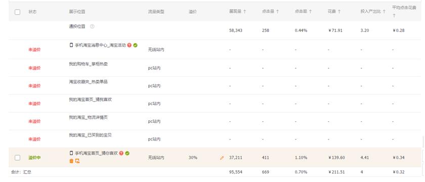 原来因为只有三个位置所以竞争还是很激烈的,这就造成了不出高价就获取不到这部分流量的尴尬局面。而现在展现量与之前相比提升了4—5倍,位置的增加就意味着我们可以不用出高价也能拿到这部分流量,获得让淘宝系统注意到我们的机会。因为增加的位置都是后排的,所以竞争也会相对少了很多点击单价也会变低很多。
